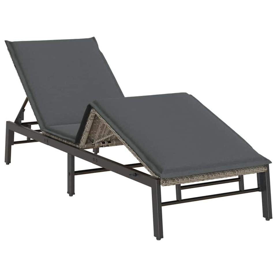 Tumbona Ajustable de Ratán PE Gris y Acero con Recubrimiento en Polvo, Muebles de Exterior Duraderos