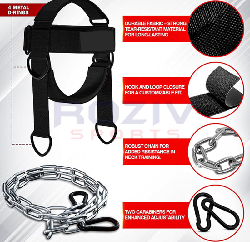 Correa de Cabeza y Barbilla Ajustable de Alta Calidad Roziv Sports RS-HCS-04, Acolchada con Neopreno Suave y Resistente, para Ejercicios de Fuerza del Cuello en Adultos