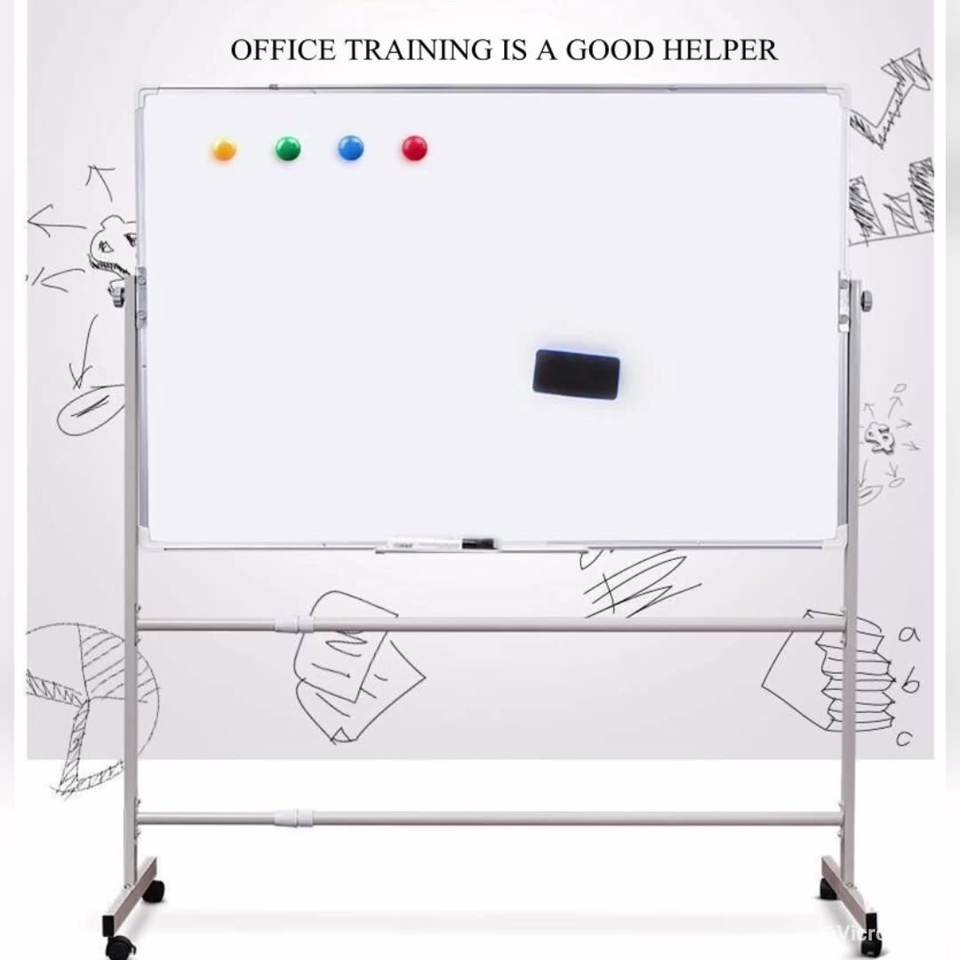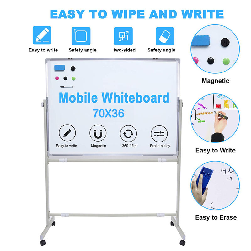 Altura Ajustable 360 ° Pizarra Blanca Magnética de Doble Cara con Soporte Giratorio y Ruedas - Pizarra Blanca de Oficina