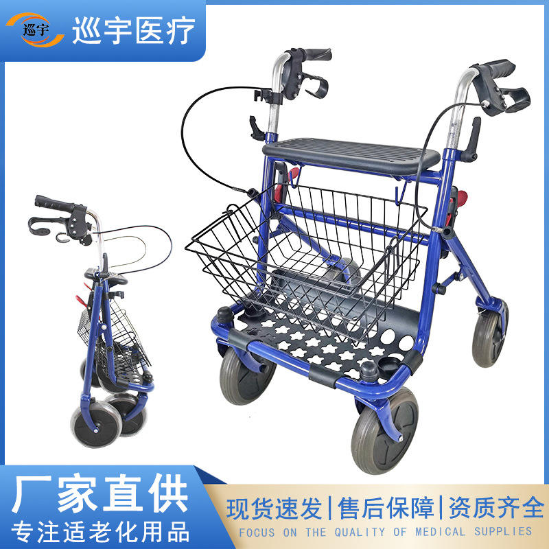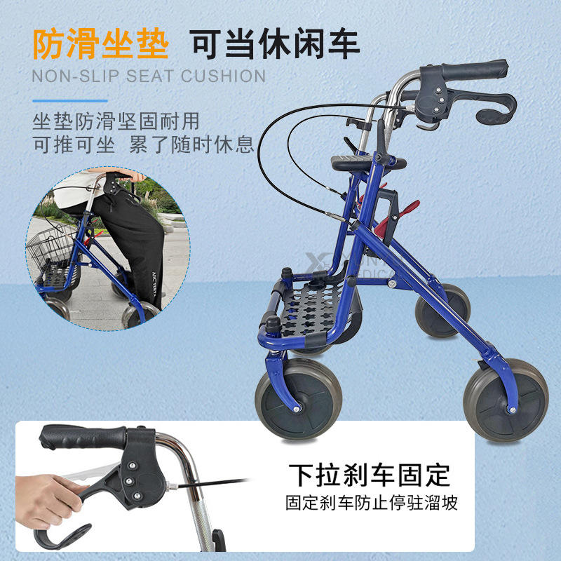 Carrito de compras de cuatro ruedas con altura ajustable y freno de mano para asistencia a personas mayores al caminar