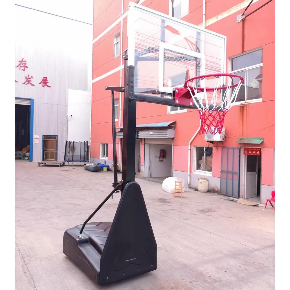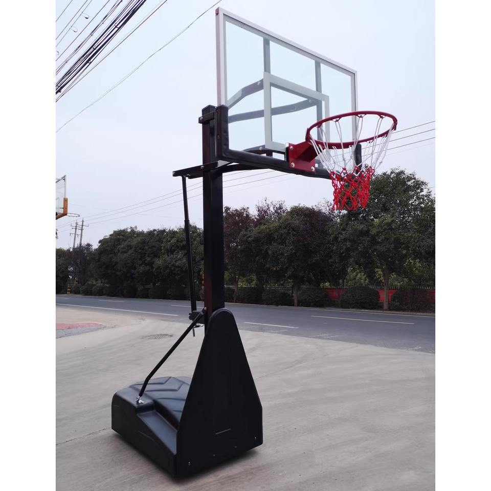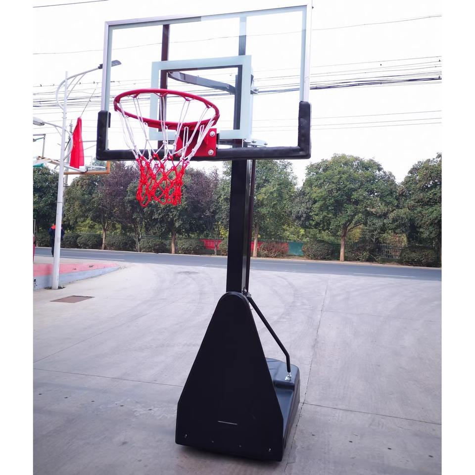 Aro de Baloncesto Portátil de Altura Ajustable con Tablero de Vidrio Templado para Uso en Canchas Exteriores
