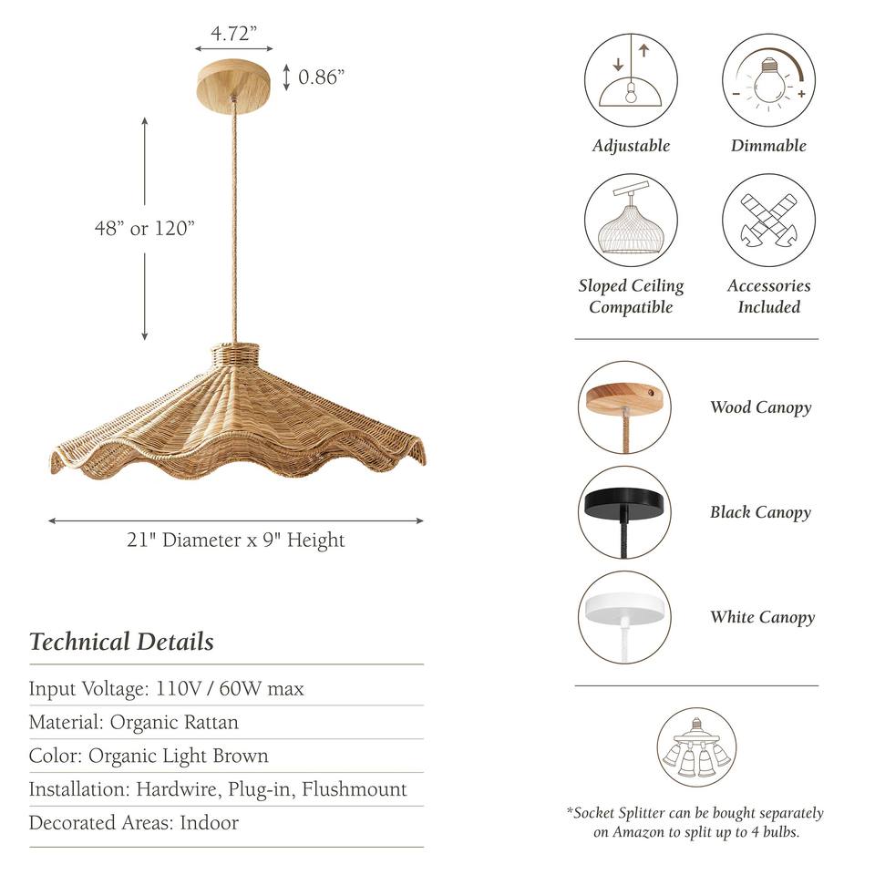 Lámpara colgante de ratán tostado de altura ajustable, candelabro de diseño de lágrima para isla de cocina y comedor, Bombilla E26/E27 de tamaño pequeño