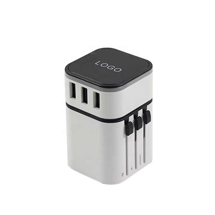 Adaptador de viaje de alta calidad ajustable, enchufe promocional portátil, convertidor universal de viaje con luz, color blanco