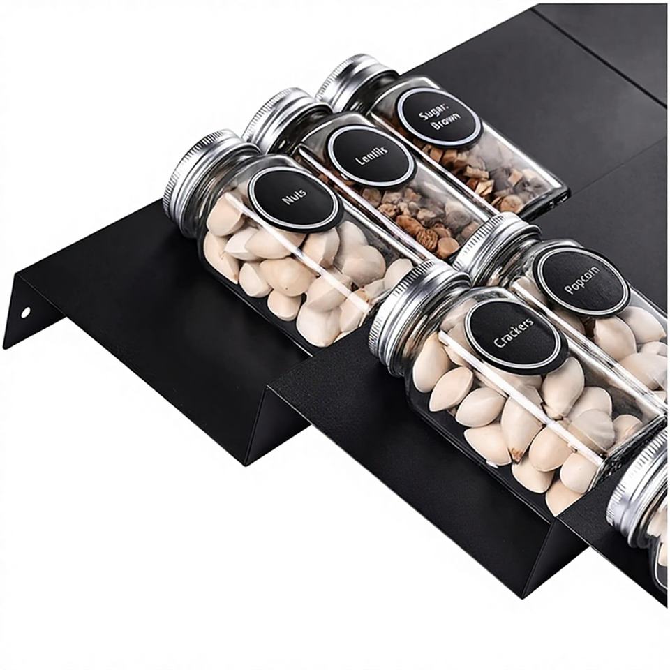 Organizador de cajón para el hogar, estante de especias de acrílico negro de 3 niveles, colgante inmaterial y ajustable, montado en la pared