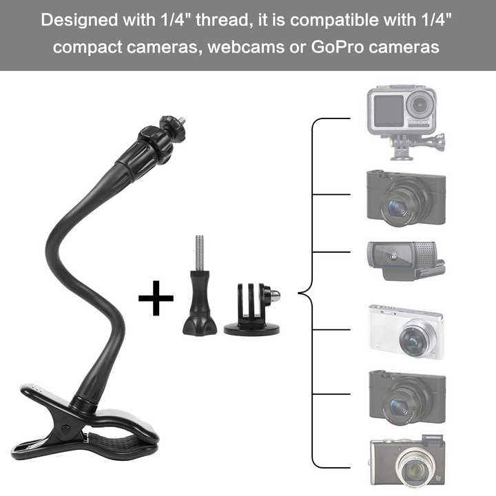 Soporte de Abrazadera Flexible con Mandíbulas Ajustables y Extensión de Cuello de Cisne para Cámara Web Logitech C925e/C922x/ GoPro Hero 13/12/11/10/9/Arlo Ultra/Pro 2