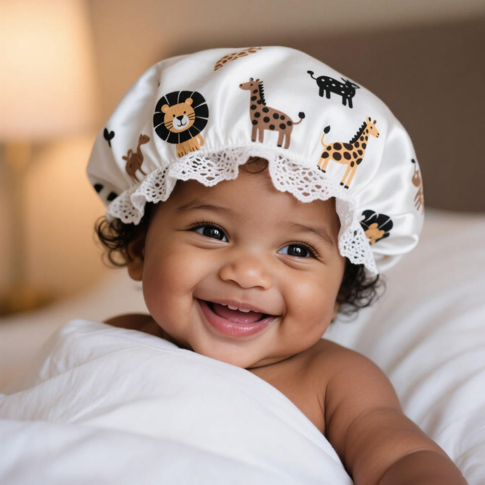 Gorro ajustable para dormir para niños, gorro de pelo satinado con patrón de dibujos animados para protección del cabello rizado, uso diario, todas las estaciones
