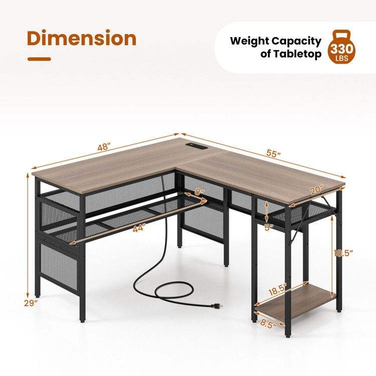 Escritorio de Computadora en Forma de L Ajustable con Estación de Carga, Espacio de Trabajo Cómodo con Funciones Prácticas