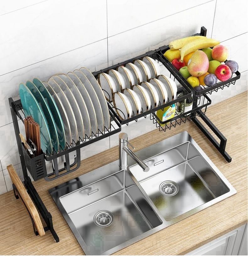 Escurridor de platos grande ajustable para organizador de cocina, soporte para utensilios de acero inoxidable, estante para platos sobre el fregadero