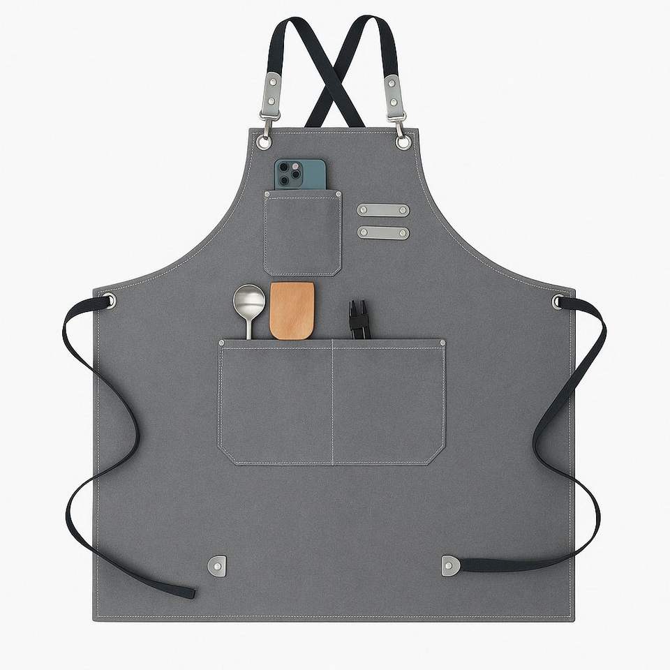 Delantal de Cocina Ajustable de Cuero con Tela de Lona para Hombres y Mujeres, Uso en Restaurantes y Bares