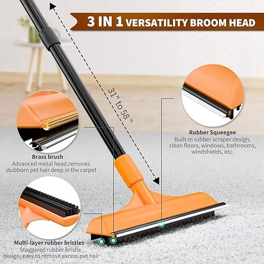 Rascador de Pelo para Mascotas con Mango Largo Ajustable, Kit de Rastrillo para Alfombras Reutilizable para Pelo de Perro y Gato, para Eliminar Pelos de Alfombras de Baño