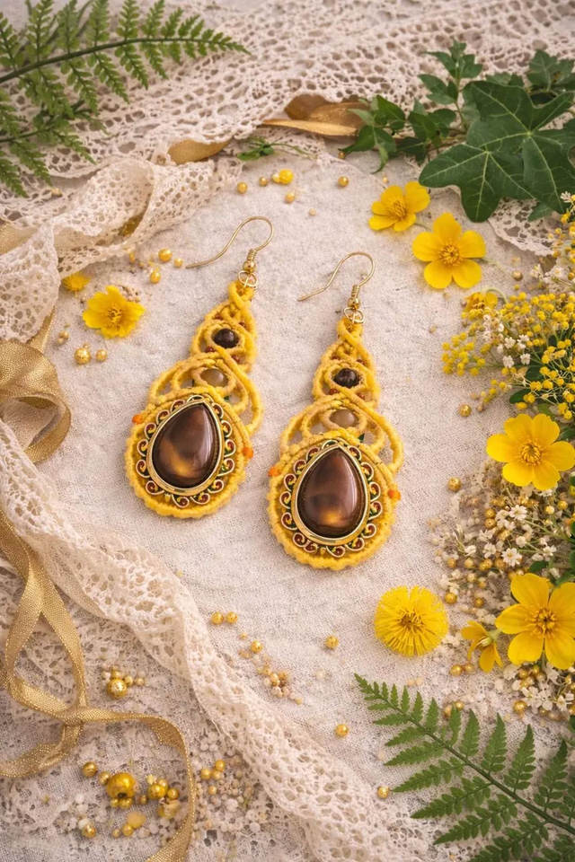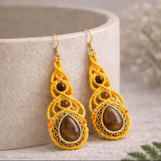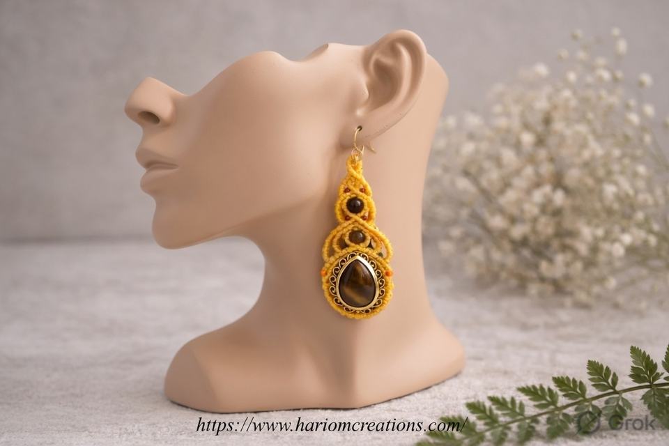 Pendientes Colgantes Ajustables de Plata de Ley con Macramé, Ojo de Tigre, Estilo Bohemio, Cordón Dorado, Piedra Preciosa, Cristal Curativo para Mujer HARI OM