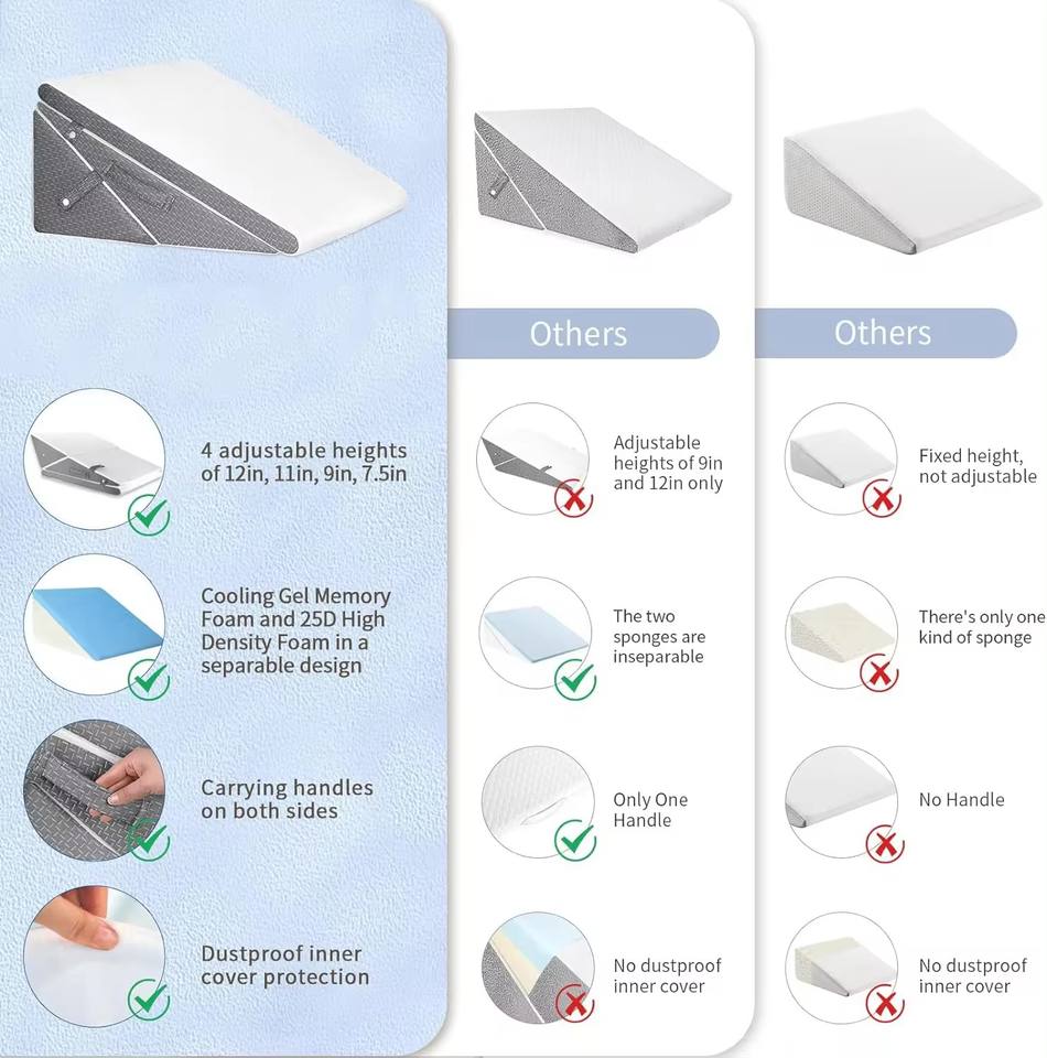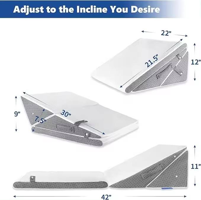 Almohada de cuña de cama triangular de espuma viscoelástica ajustable para dormir después de la cirugía y espalda-piernas-soporte de rodilla antireflujo ácido