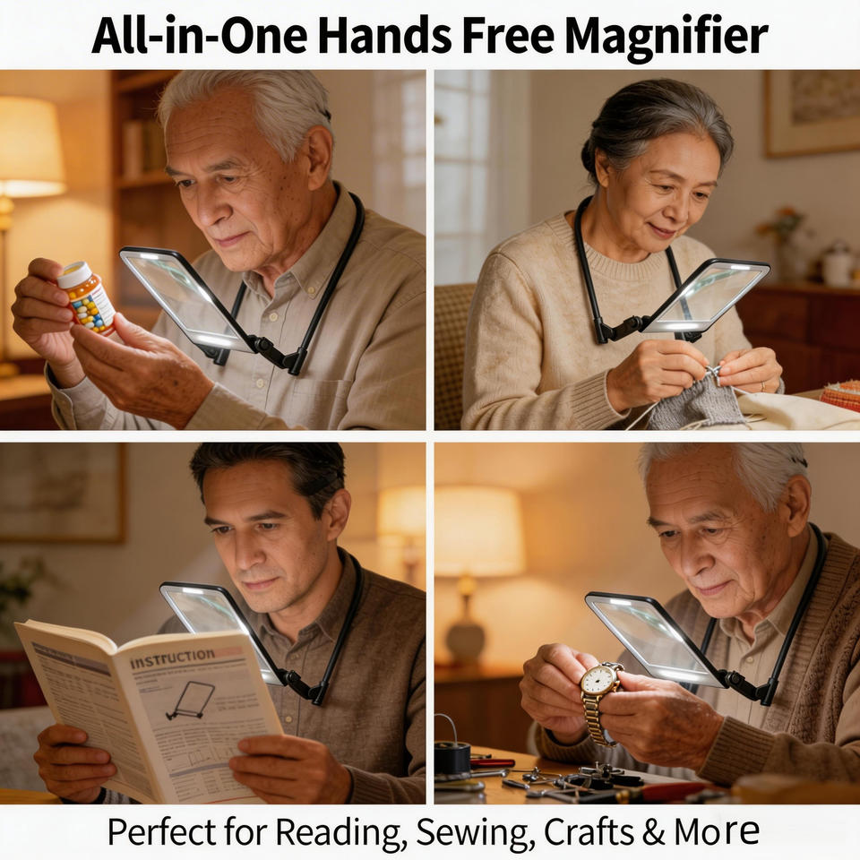 Lupa LED Multilente Ajustable, Recargable por USB, Gafas de Lectura para Personas Mayores, Luz Nocturna de Manos Libres