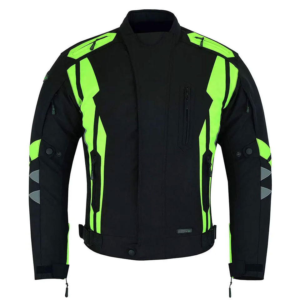 Nueva llegada ajustable personalizado hombres impermeable mejor calidad negro textil cuero genuino motocicleta chaqueta para hombre