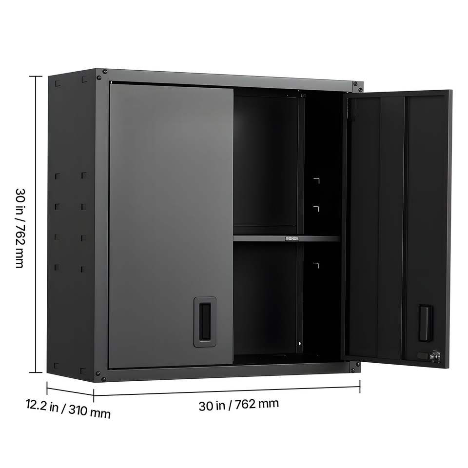Estante Ajustable de Acero, Armario de Almacenamiento Flotante Colgante, 30W X 12.2D X 30H Pulgadas, Armario Metálico de Pared con Puertas con Cerradura, Estantes para Garaje