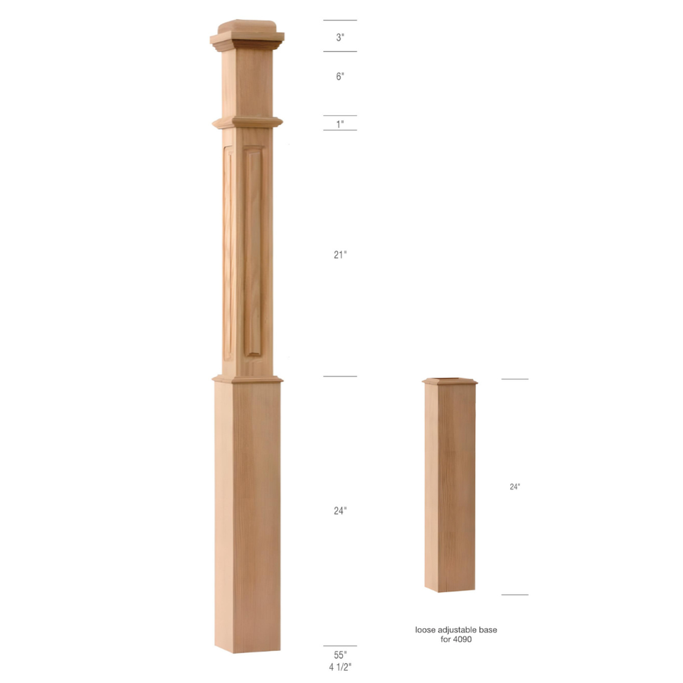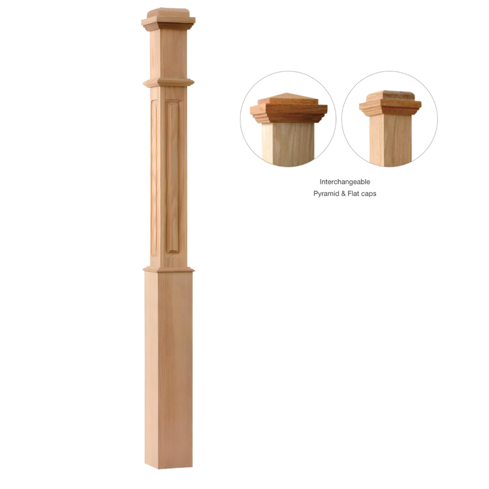 Escaleras de manga ajustable para tapas planas de pirámide intercambiables Caja de panel plano de madera de caucho de madera maciza Newel de 55 \ "para escalera