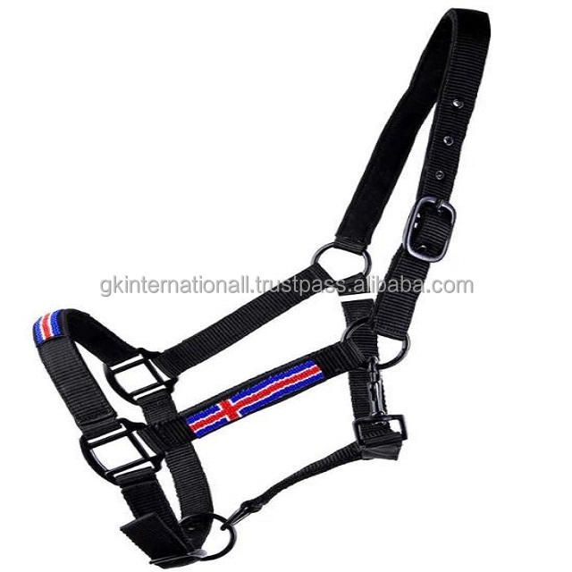 Correas ajustables de nailon suave, alta calidad, halter de caballo de nailon con cuentas, bandera islandesa en la nariz y Accesorios Negros, personalizado