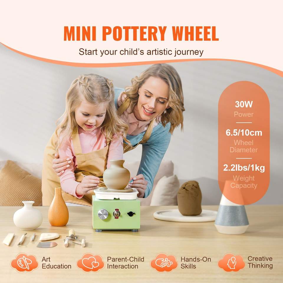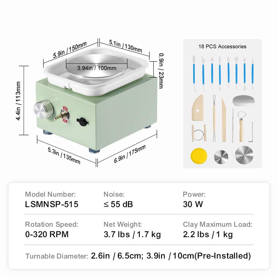 Mini Torno de Cerámica de Velocidad Ajustable con Tazón Desmontable, Máquina de Modelado de 2.56in/3.94in, 2 Platos Giratorios, Eléctrico, para Cerámica y Esmalte
