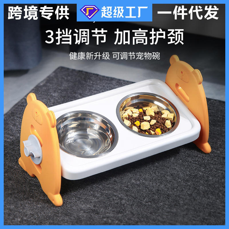 Tazón individual ajustable de acero inoxidable con soporte para el cuello (amarillo)