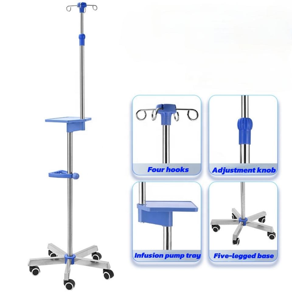 Soporte de Infusión Móvil Ajustable de Acero Inoxidable con Barra de Infusión Suministrada Directamente por el Fabricante para Uso Hospitalario