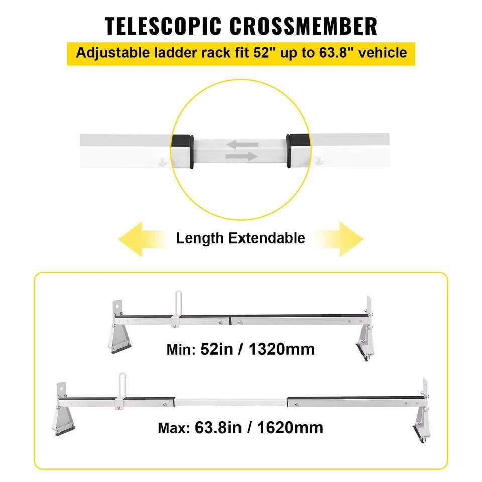 Portaequipajes de Acero Ajustable para Furgonetas, Portaequipajes de 2 Barras para Techo de Furgoneta, Capacidad de 331 LBS, Barras Transversales de 52-63.8 Pulgadas, Topes para Escaleras, Compatible con Furgonetas
