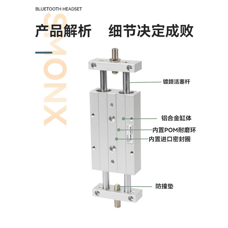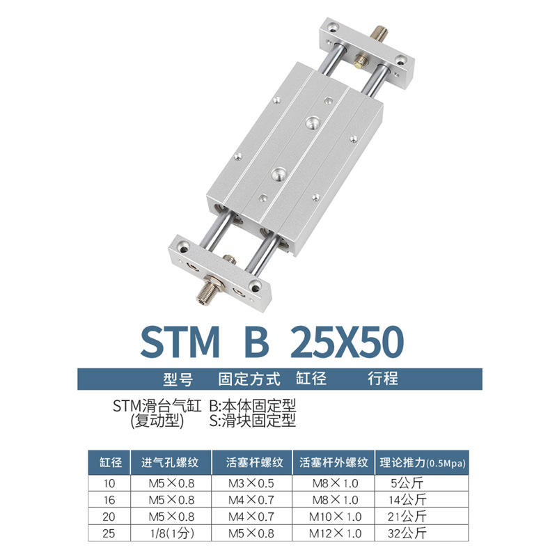 Cilindro Deslizante de Carrera Ajustable STMB10/16/20/25/50/75/150STMS, Neumático de Doble Eje y Doble Vástago, Nuevo y Usado, Conexión Roscada