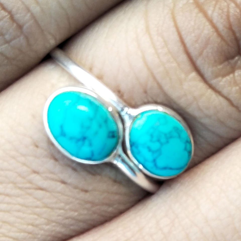 Anillo Ajustable con Bisel Turquesa, Regalo para Mujer, Plata de Ley 925, Piedra Preciosa, Joyería India Hecha a Mano, Joyería de Lujo al por Mayor para Bodas