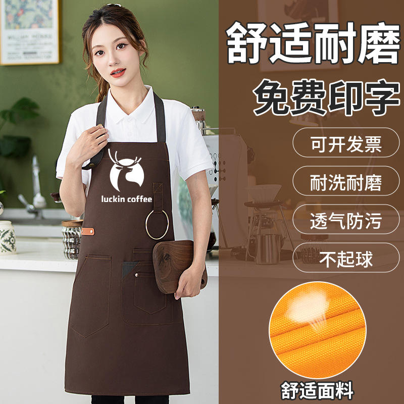 Delantal de Lona Impermeable Ajustable, Talla Única, de Poliéster, para Tiendas de Té, Restaurantes y Cocinas, con Impresión de Logotipo
