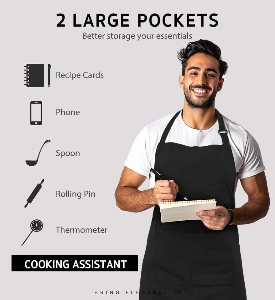 Delantal de Chef Ajustable e Impermeable con 2 Bolsillos | Delantal de Cocina para Cocinar, Hacer Barbacoa y Pintar, Negro (Paquete al por Mayor Disponible)