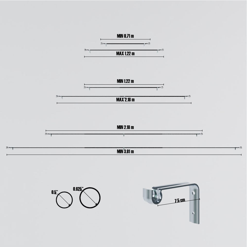 Longitud:71-1,22 m, 1,22-2,18 M, 2,18-3,81 M