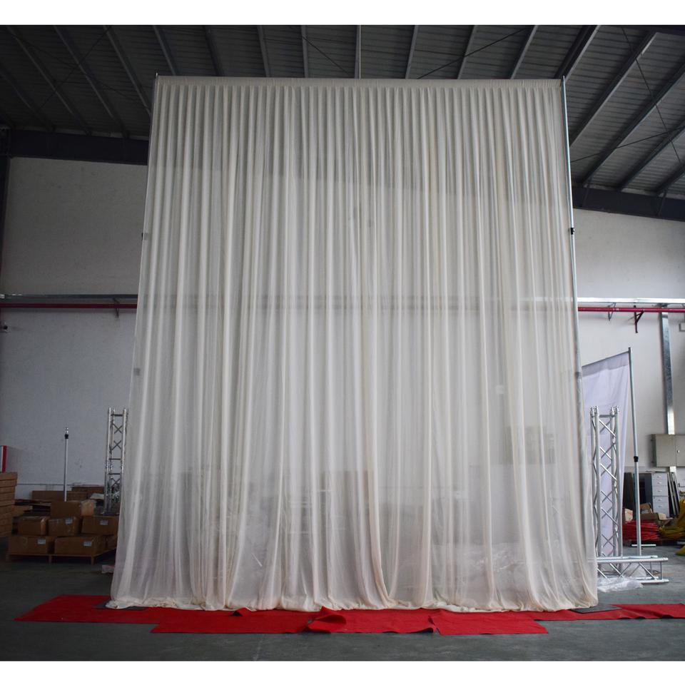 Sistema de telón de fondo ajustable con tubos y cortinas blancas para decoración de stands de exposiciones
