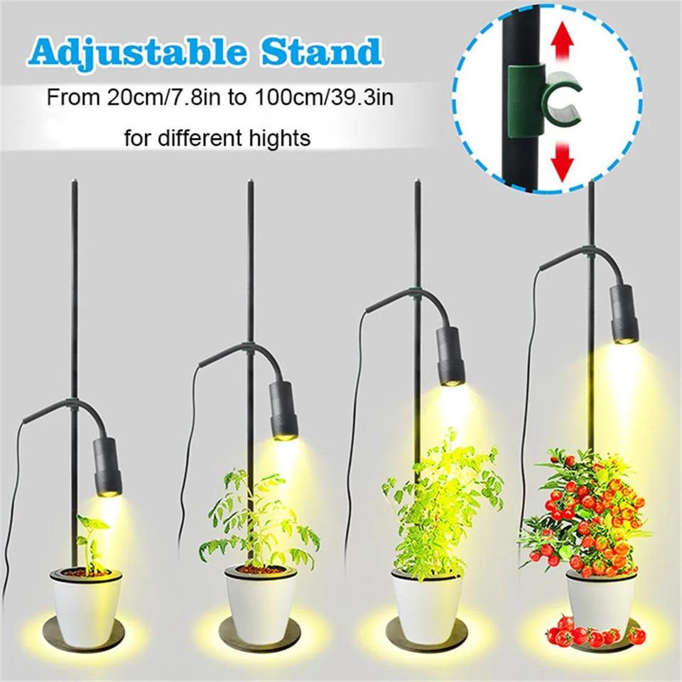 Lámpara LED de Cultivo de Plantas de Espectro Completo de 10W con Altura Ajustable y Zoom, 5 Niveles de Intensidad, Temporizador de 3/6/12H, para Escritorio o Suelo