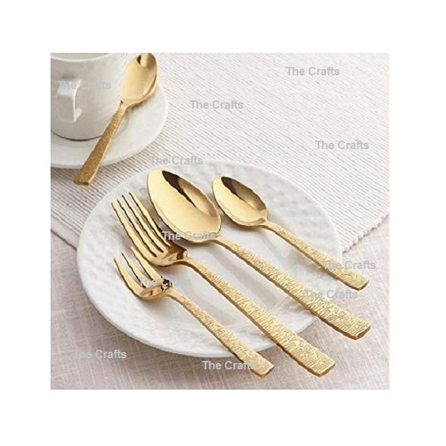 Juego de cubiertos de latón de diseño atractivo, juego de cubiertos de 3 tenedores, 2 cucharas y 1 cuchillo para servir alimentos y comer