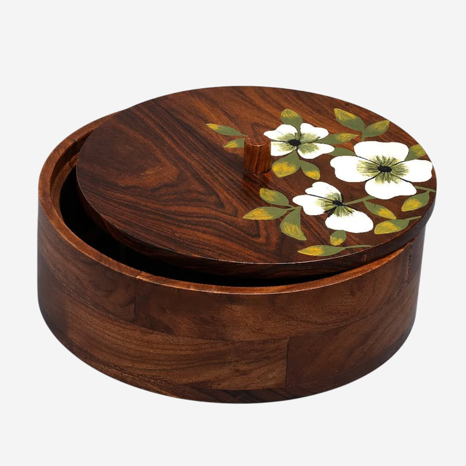 Admirable diseño pintado a mano Floral Mango madera Roti caja tradicional indio Chapati cazuela para frescura en precio asequible