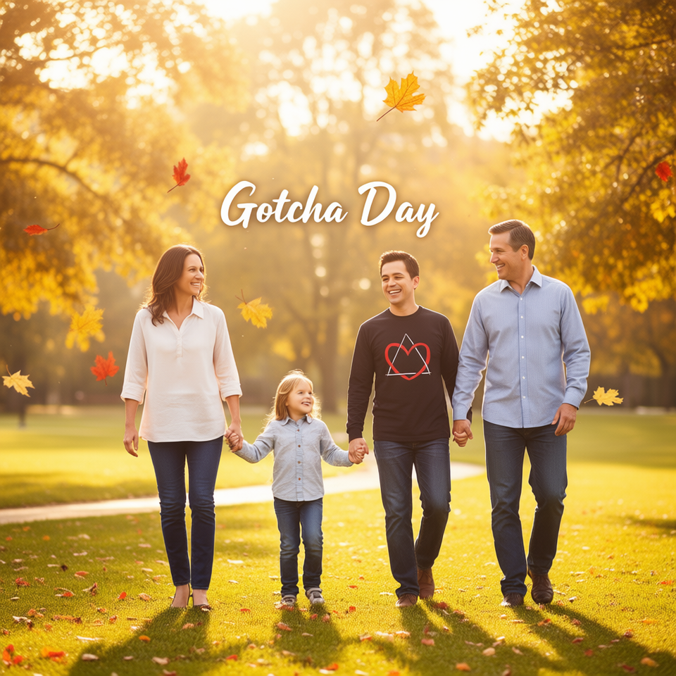 Camiseta de manga larga con símbolo de triángulo y corazón, para el Día de la Adopción Familiar
