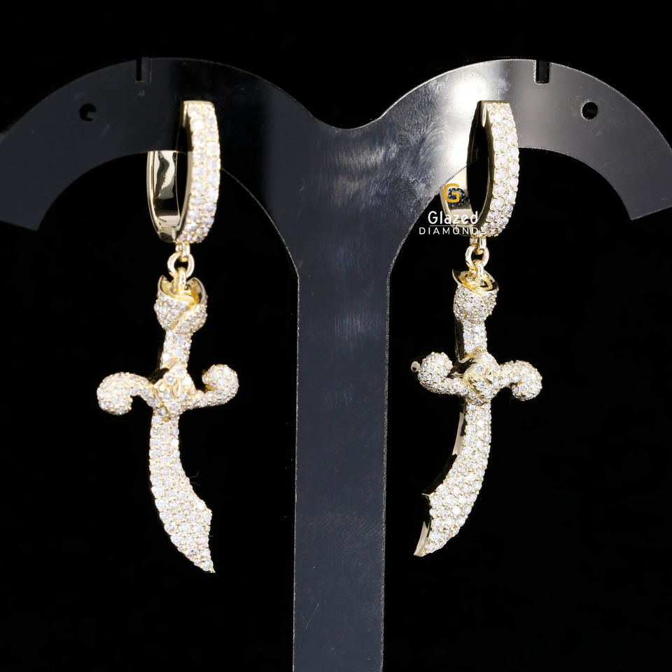 Adorable 10Kt oro amarillo corte redondo VVs claridad Moissanite diamantes Iced Out pendientes de Aro para Unisex