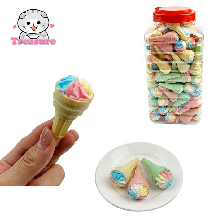 Adorables mini caramelos de goma en forma de cono de helado en multicolor vivo para bocadillos dulces