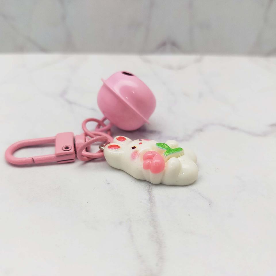 Nombre del producto:Adorable llavero con dije de flor de conejito campana rosa pastel