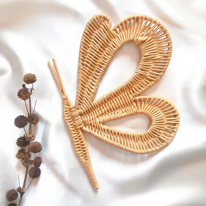 Adorable decoración de pared de mariposa de ratán, decoración de guardería de ratán bohemio