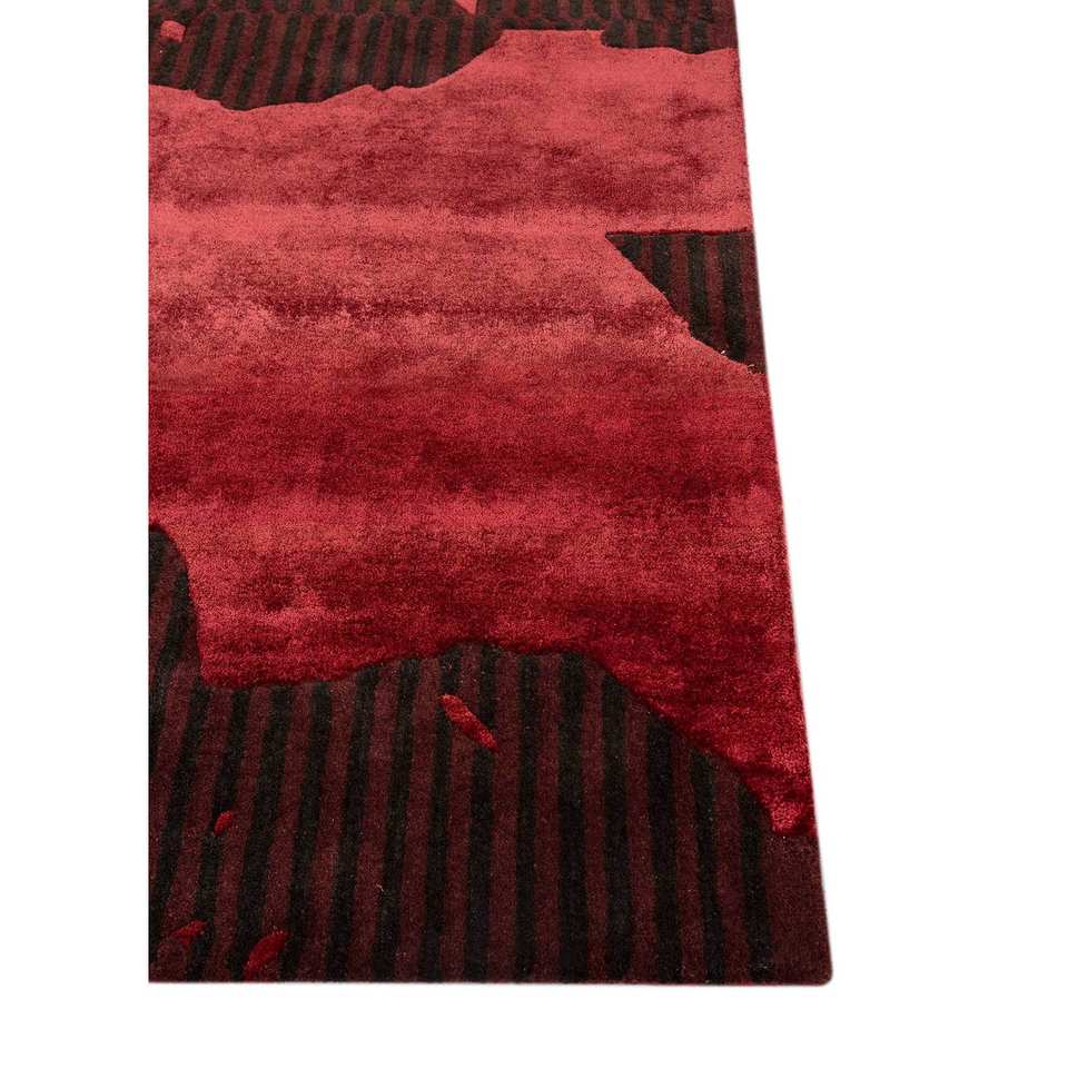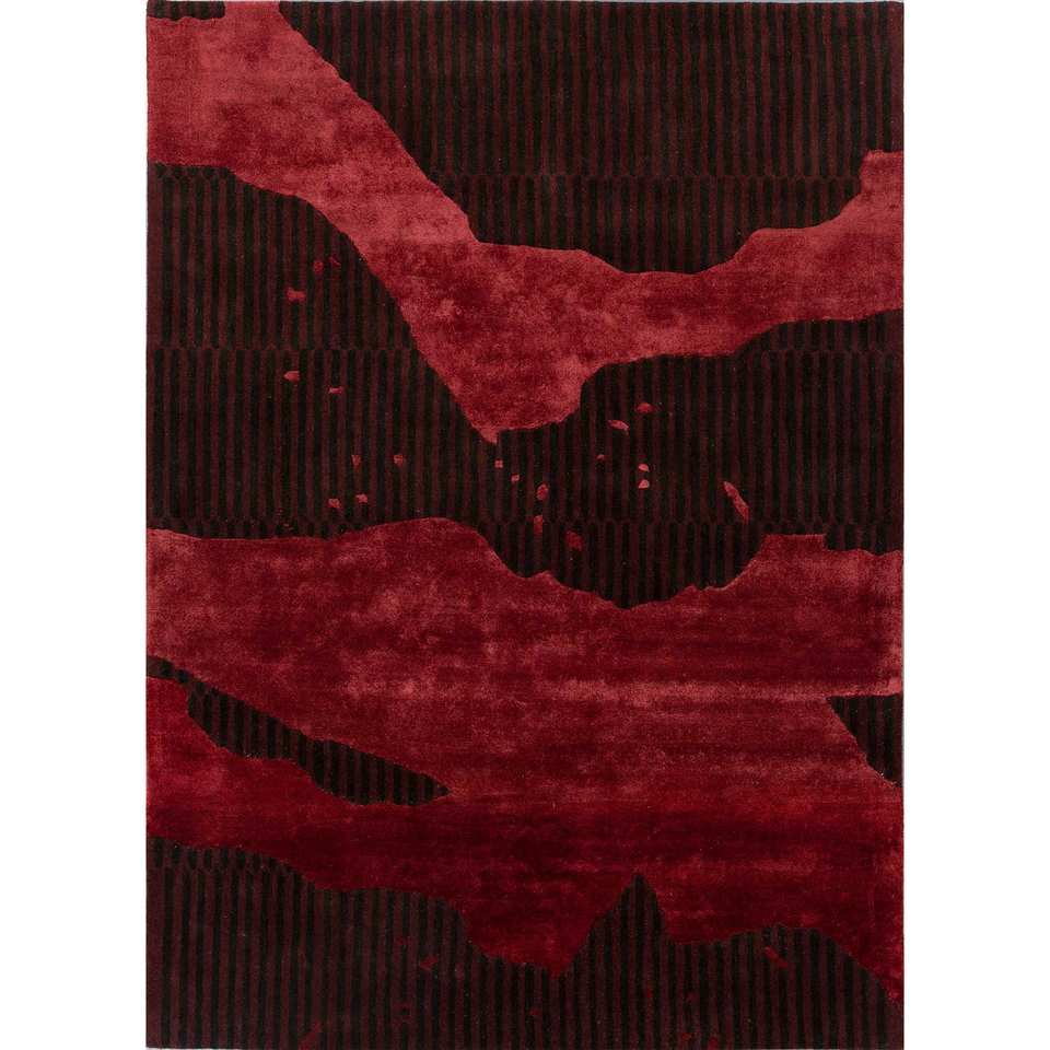 Alfombra Adrift de Lana y Viscosa con Patrón Abstracto, Tejida a Mano, Roja y Naranja, Tamaño 9x12, para Decoración de Sala de Estar, Tra-15224