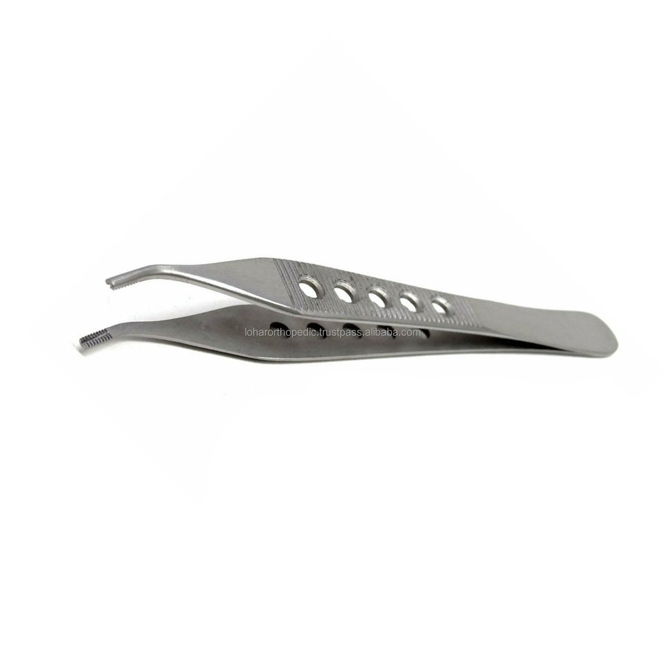 Adson Brown Tissue 9x9teeth Forceps 4,75 \ "Retractor de acero inoxidable curvo con clip manual de agarre fenestrado