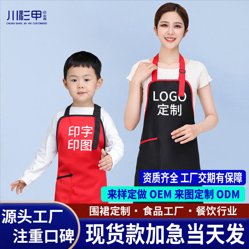 Delantales para adultos y niños de poliéster de color sólido con bolsillo para cocinar, traje de trabajo, uso familiar