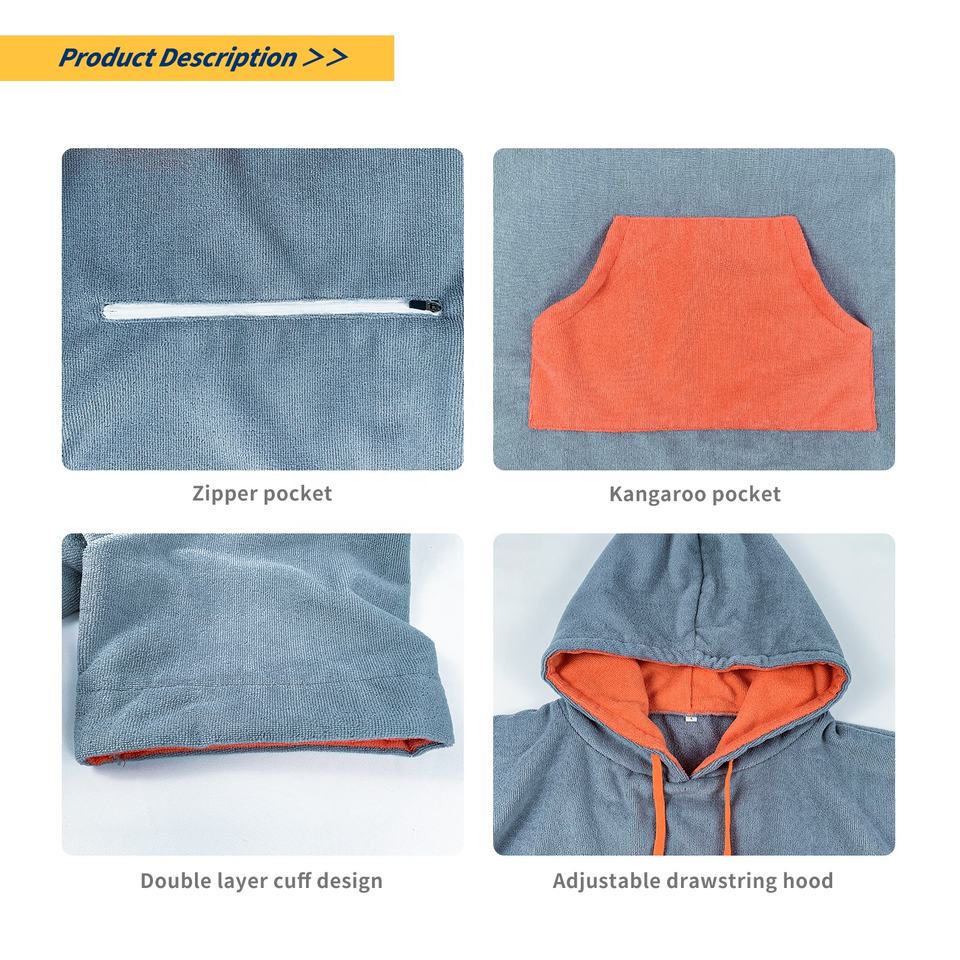 Nombre del producto:Ponchos de microfibra de rizo absorbentes de agua cálidos con capucha tipo albornoz