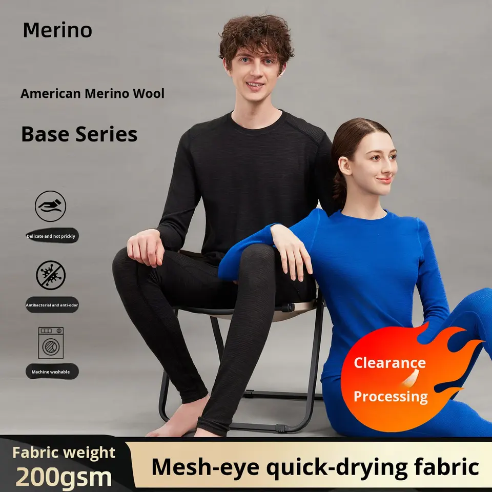 Ropa Interior Térmica de Lana Merino para Adultos, Capa Base de Malla de Lana Merino de Doble Cara