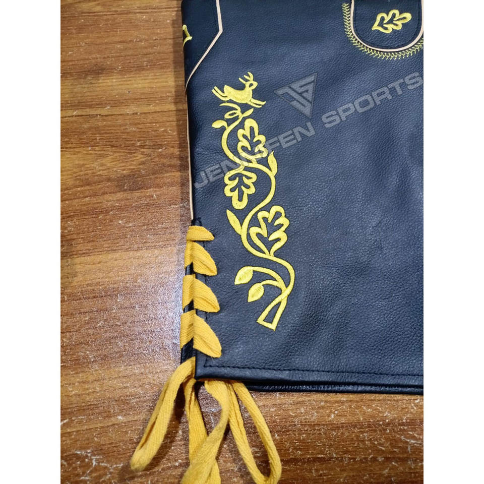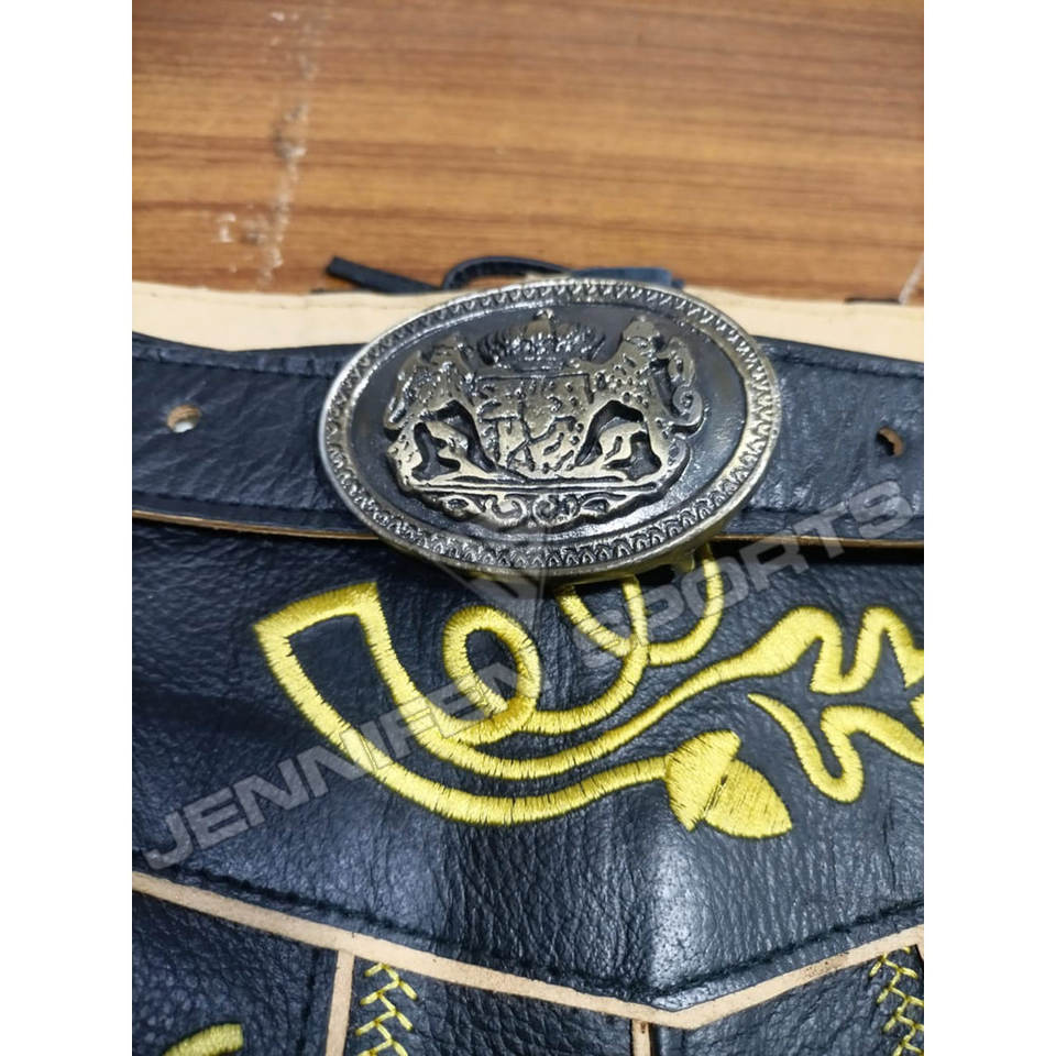 Oktoberfest Lederhosen corto de cuero de vaca genuino para hombres adultos, botones frontales bordados, bolsillos delanteros de cierre sólidos