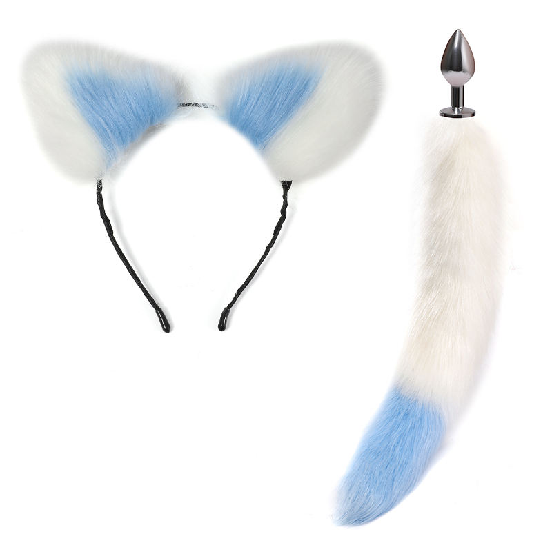 Set de Plug Anal Metálico con Orejas de Gato de Felpa Sexy y Cola de ZorroNombre del Producto