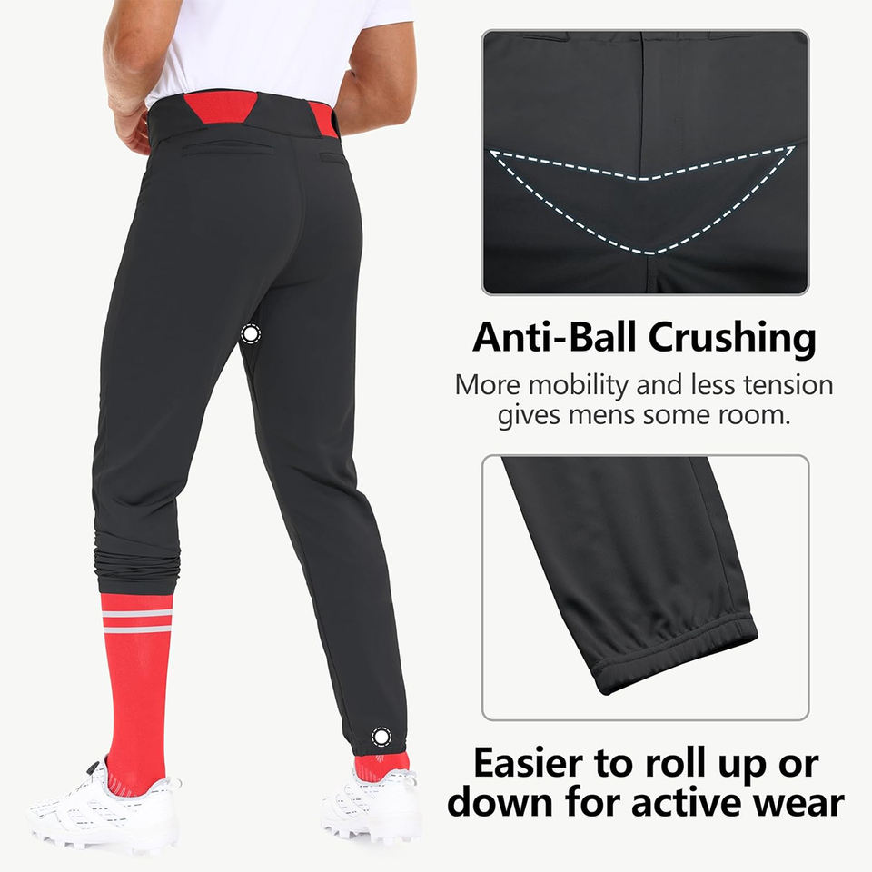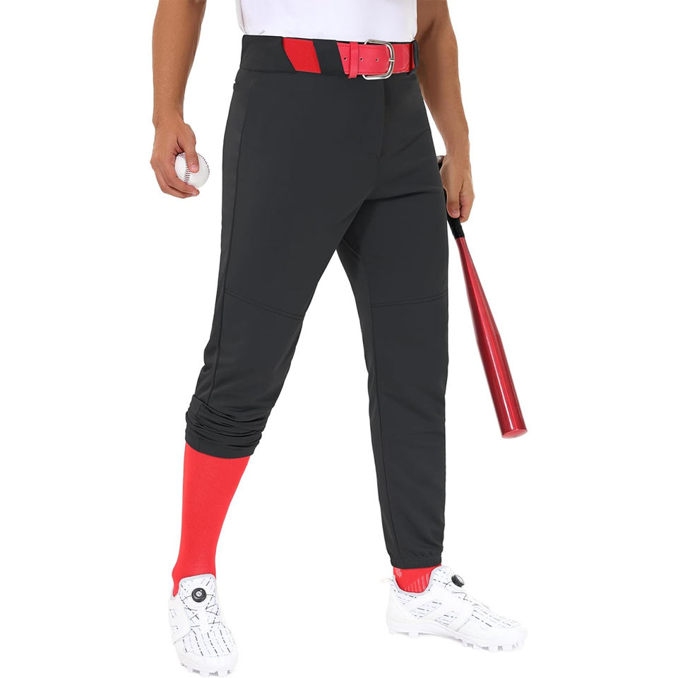 Pantalones de béisbol del equipo para adultos Color negro Fly Zip Front con dos cierres a presión Ropa deportiva de longitud completa Pantalones de béisbol para jóvenes