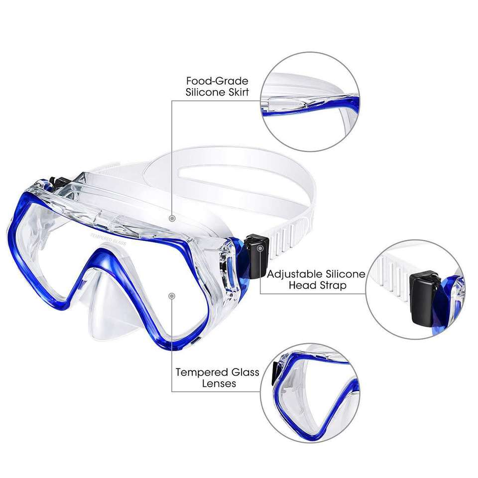 Máscara de buceo de vidrio templado para adultos, ajustable, antivaho, impermeable, de silicona, para adultos