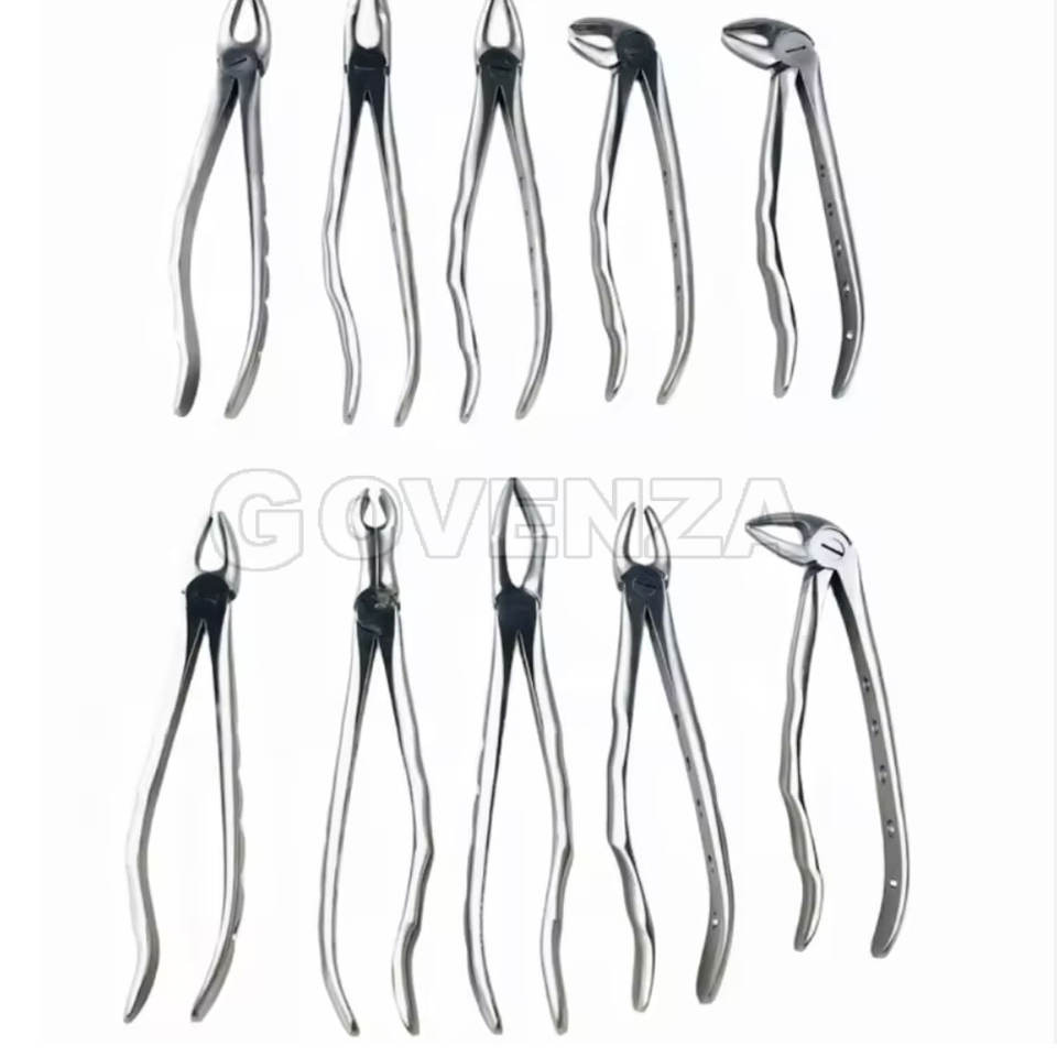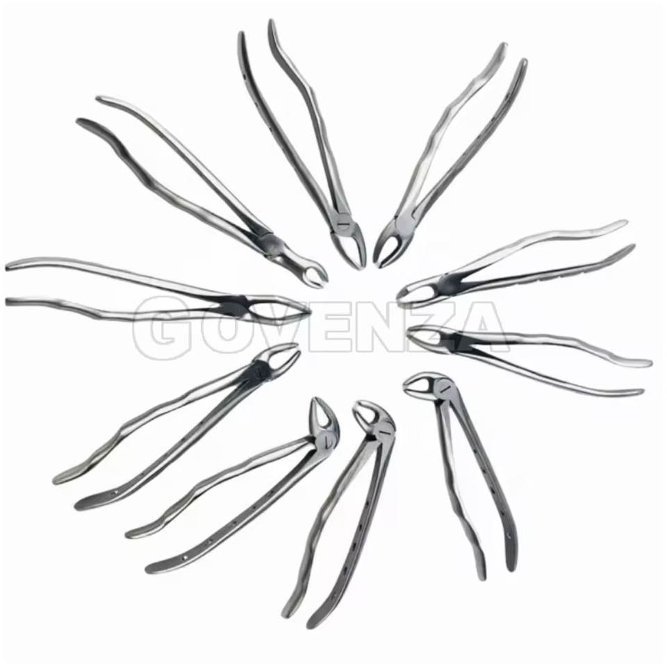 Juego de 10 Pinzas de Extracción Dental para Adultos, Pinzas Quirúrgicas Manuales de Acero Inoxidable y Tungsteno con Agarre Ergonómico