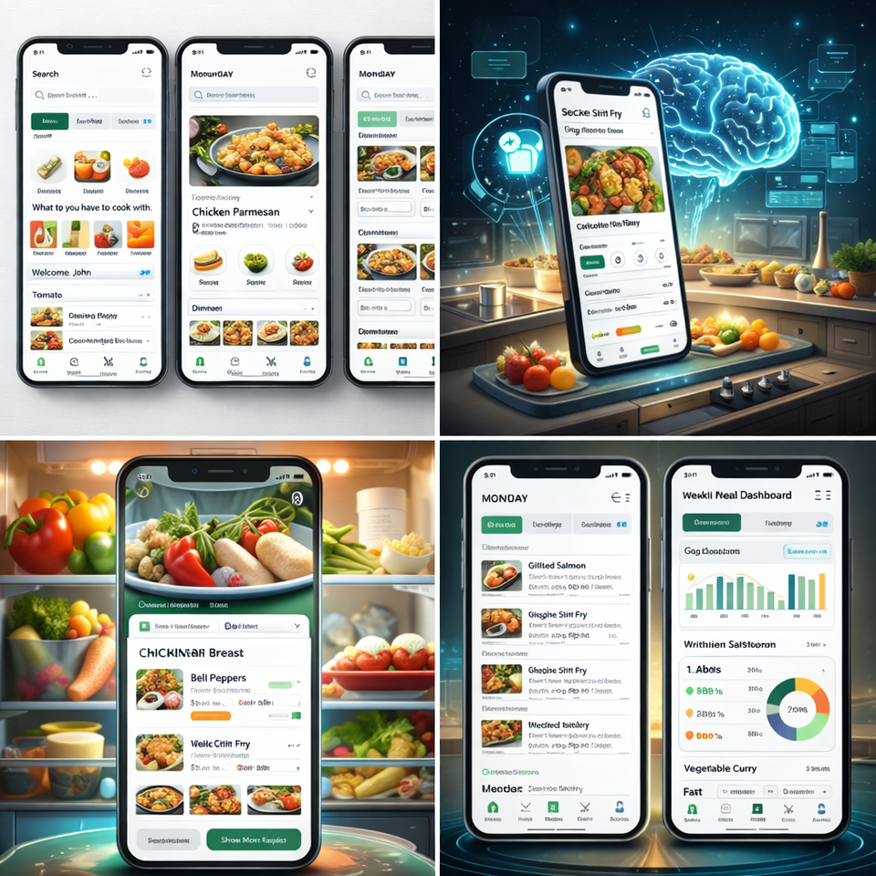 Aplicación Móvil Generadora de Recetas con IA Avanzada, Planificación Inteligente de Comidas, Recetas Basadas en Ingredientes, Seguimiento Nutricional, Panel de Administración